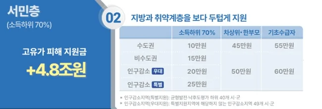 | 일반 국민 (소득 하위 70%) | 10만 원 | 15만 원 | 25만 원 |