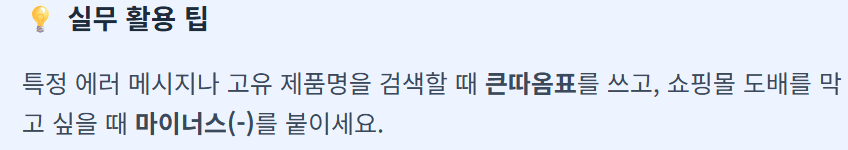 - 큰따옴표(” “): 반드시 이 단어가 포함된 결과만 보여줍니다. 특정 고유 명사나 에러 메시지를 찾을 때 필수입니다.