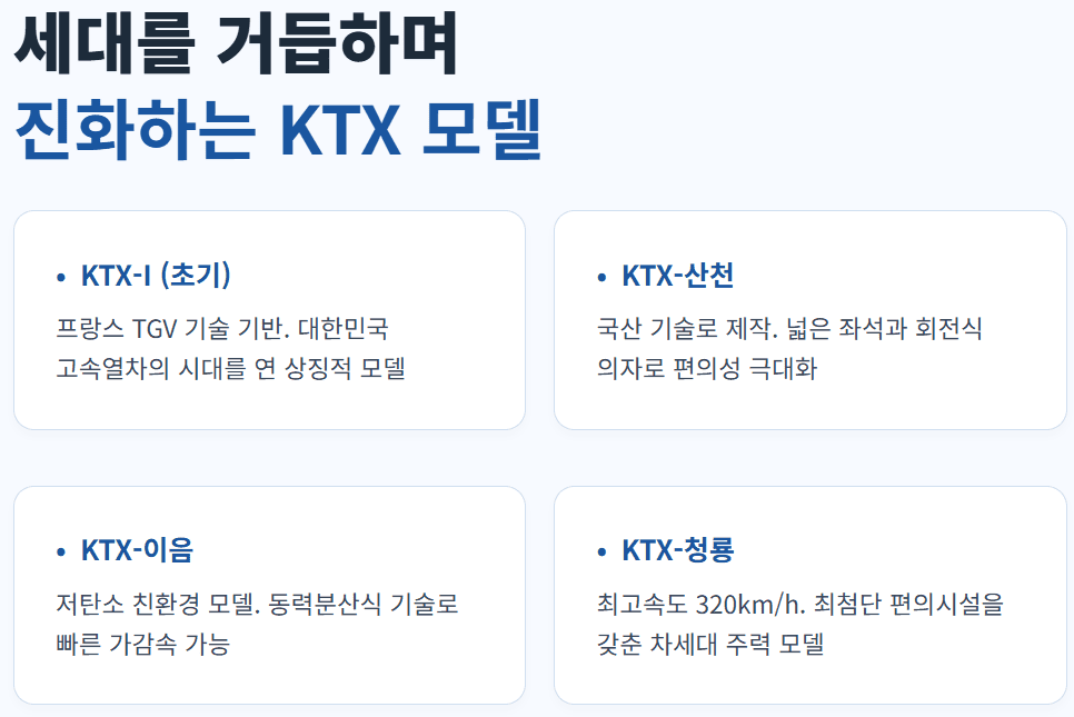 철도 역사에서 열차 모델의 변화는 곧 기술의 진보를 의미합니다. 제가 직접 타보며 느낀 각 열차의 특징을 정리해 드릴게요.