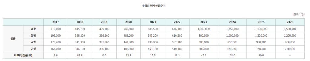 이와 관련해 군인 월급 변화 추이를 살펴보면, 담배가 보급되던 시절의 월급과 현재의 월급 차이가 얼마나 큰지 실감하실 수 있습니다.