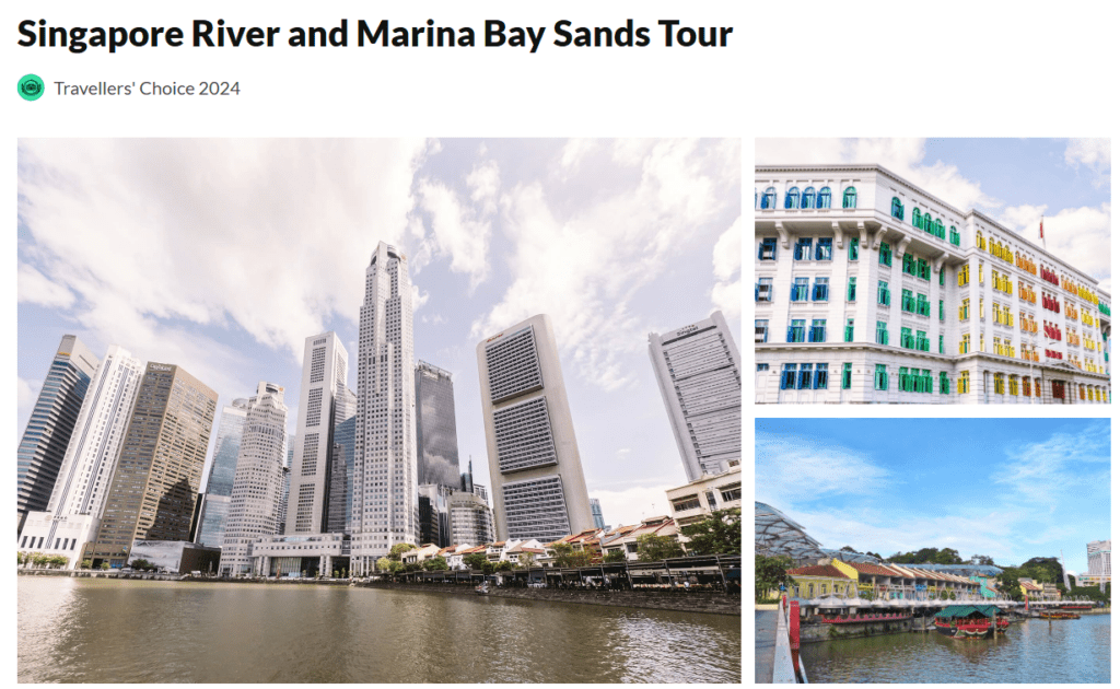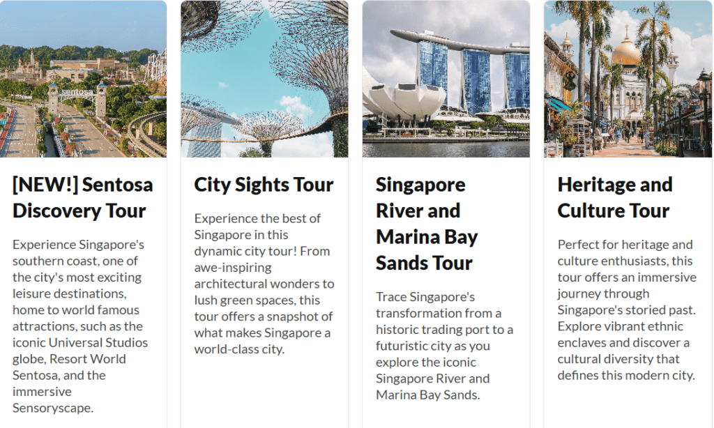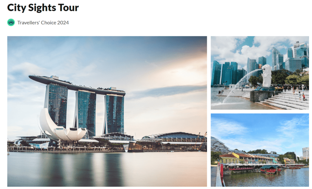 가장 인기 있는 코스는 단연 ‘시티 사이츠 투어’입니다. 마리나 베이 샌즈를 배경으로 인생 사진을 남길 수 있어 예약이 가장 빨리 마감됩니다.